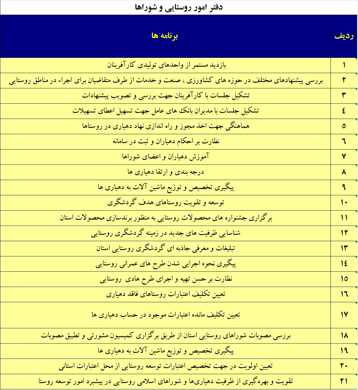 برنامه های دفتر امور روستایی و شوراهای استانداری کرمانشاه