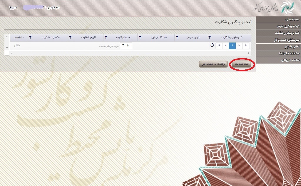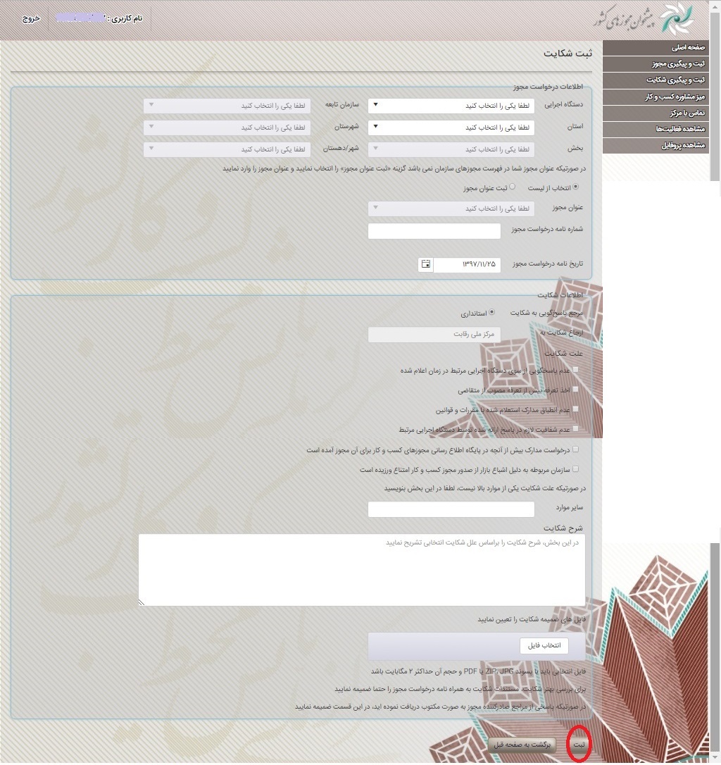 آدرس اینترنتی سامانه دریافت انعکاس و رسیدگلی به شکایات متقاضیان صدور مجوز کسب و کار: