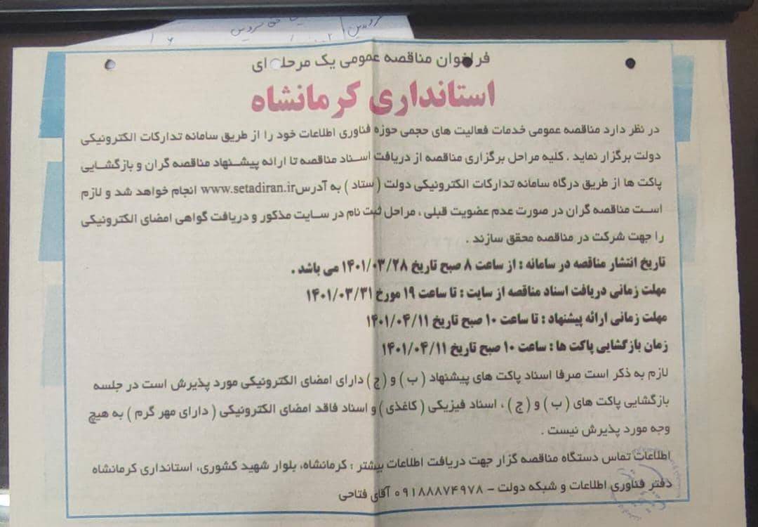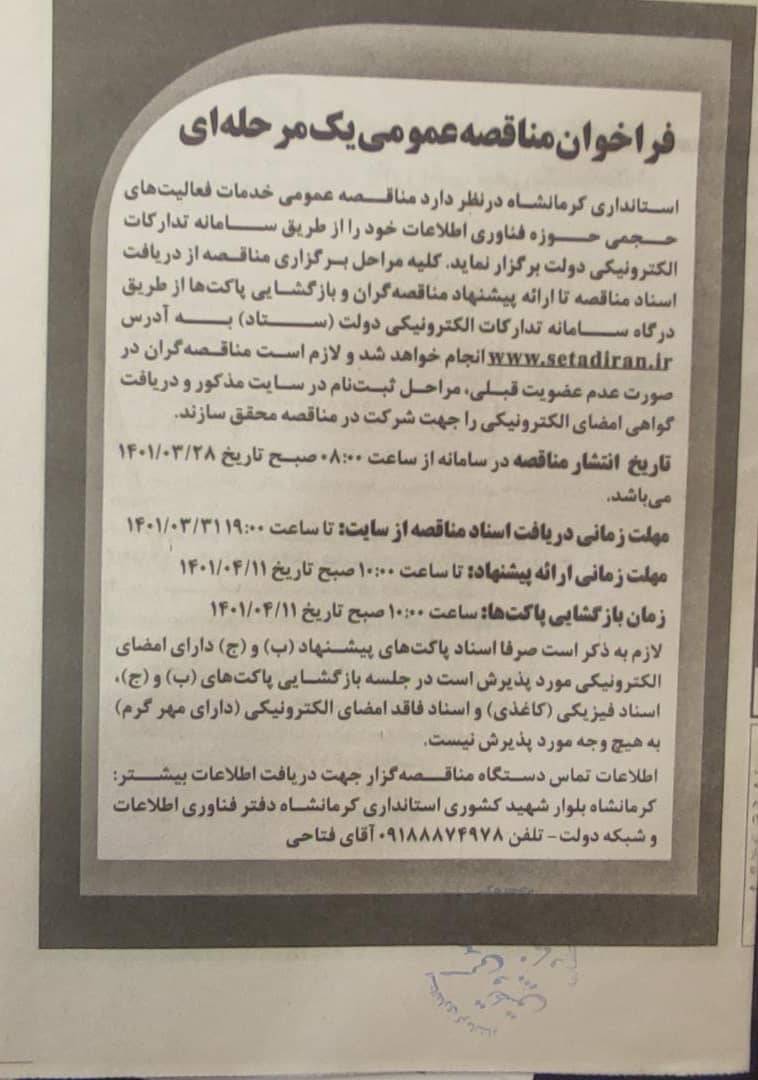 مناقصه واگذاری فعالیت های پشتیبانی و خدماتی حوزه فناوری اطلاعات1401